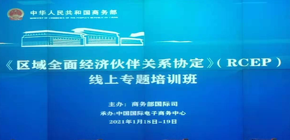 1月18日,商务部举办《区域全面经济伙伴关系协定》(RCEP)线上专题培训班。商务部部长王文涛为开班式作视频致辞时指出,各地、各部门要从经济社会发展全局出发,充分认识RCEP的战略意义、历史意义和实践意义,推动RCEP尽早生效实施。还要持续组织开展宣介培训,让RCEP更快、更好惠及广大企业。